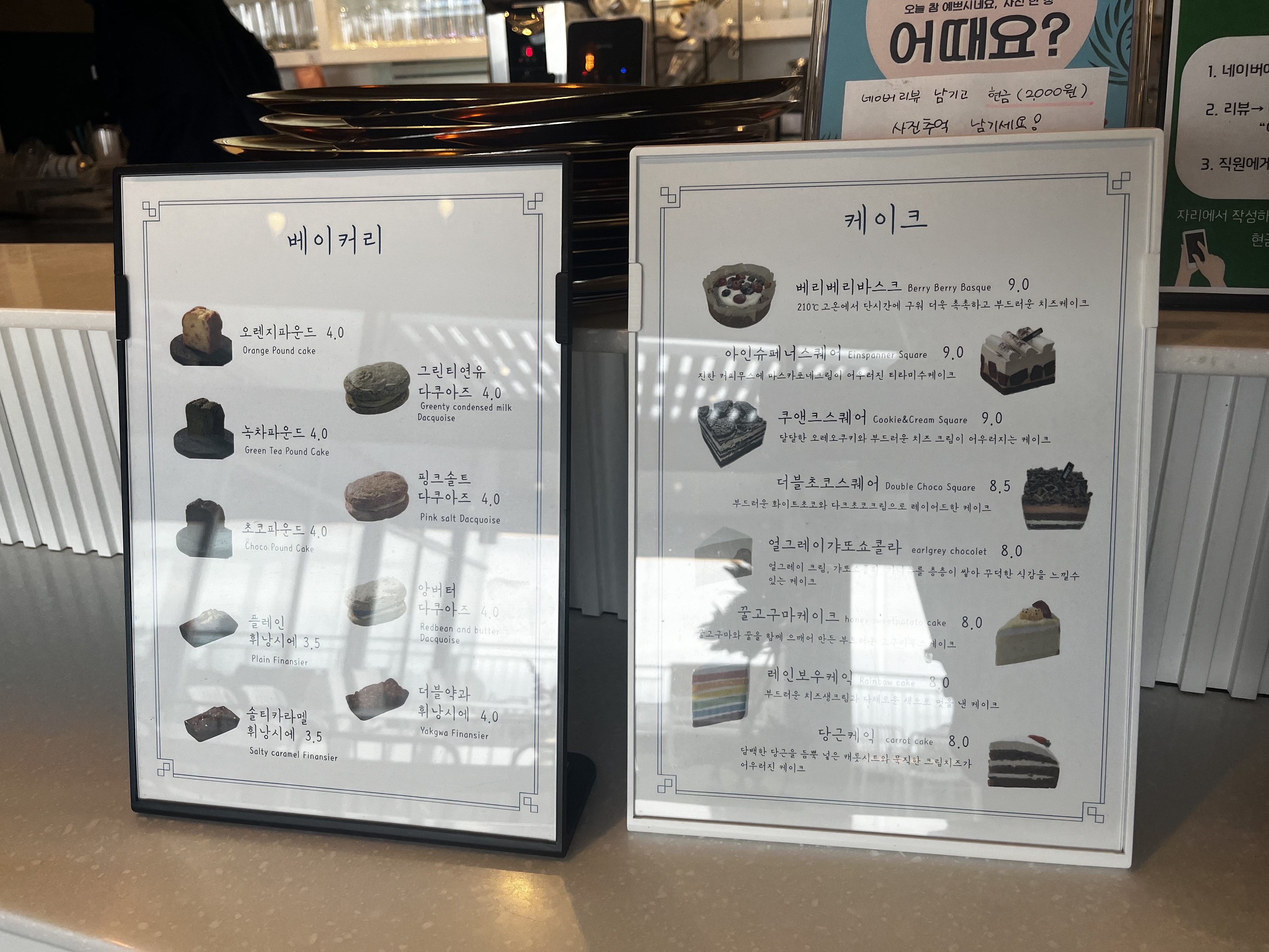 - 메뉴/가격: 관광지 뷰 좋은 카페치고는 합리적인 가격!