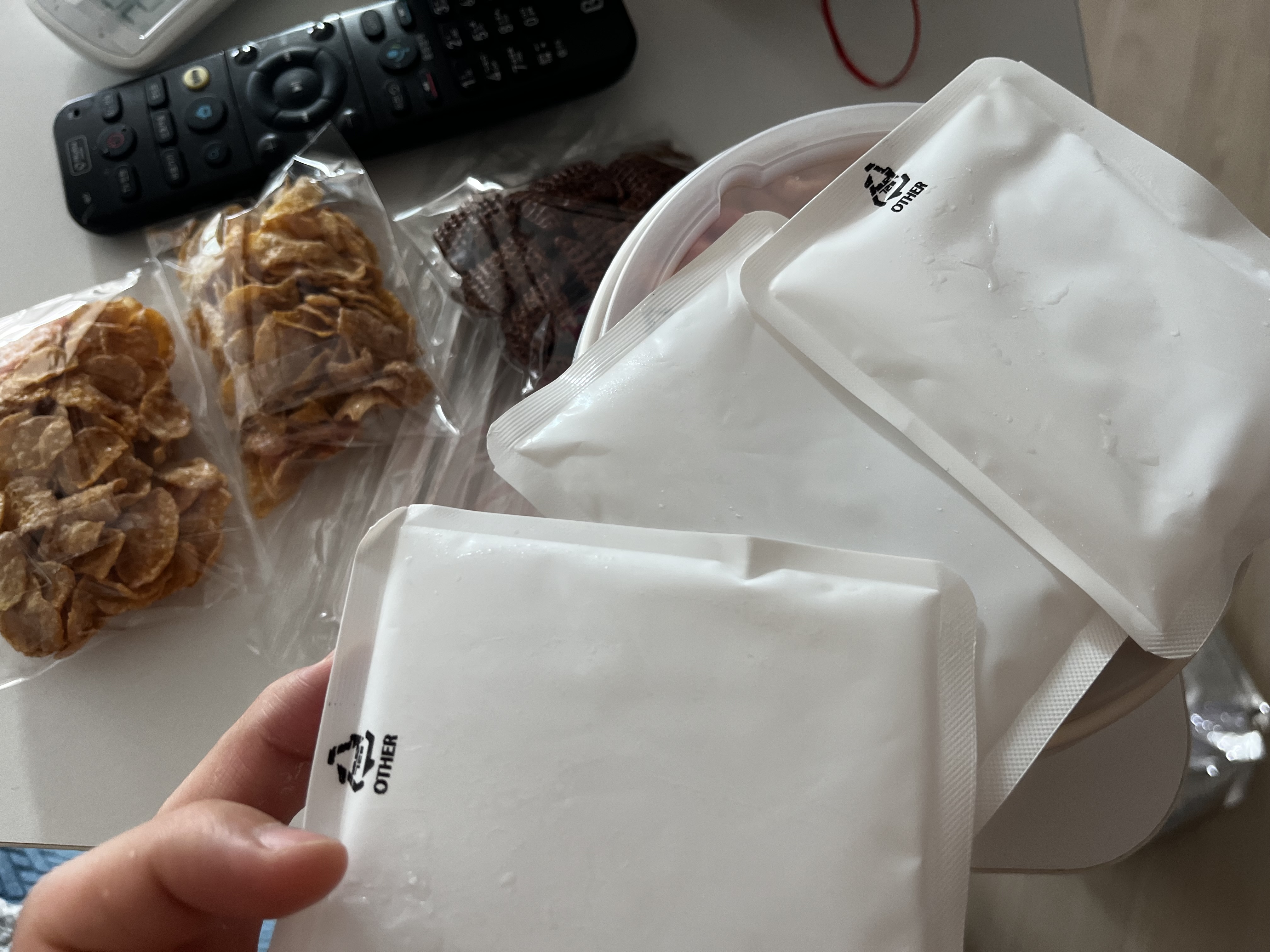 - 과자류는 바삭함을 위해 별도 포장으로 온다!